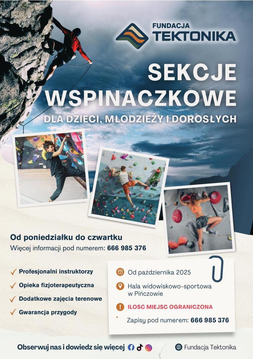 Zajęcia w Pińczowie będą prowadzone przez doświadczonych trenerów, w tym Krzysztofa Sternaka - wspinacza z 16-letnim stażem oraz fizjoterapeutę z 13-letnią praktyką zawodową. Dzięki temu uczestnicy mogą liczyć na profesjonalne i bezpieczne treningi, które rozwijają zarówno kondycję, jak i świadomość własnego ciała.